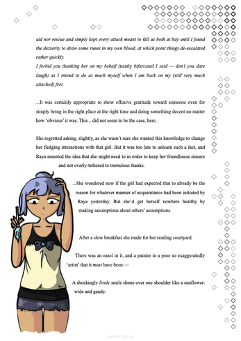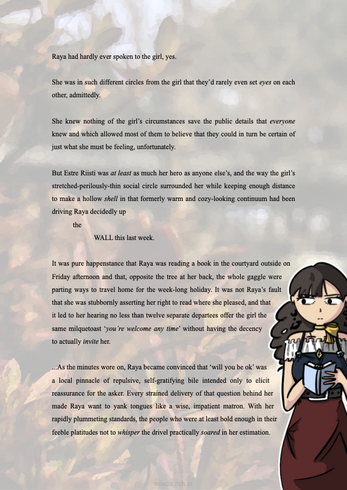 Illustrated story. Characters getting to know each other. Alternative title: "Raya overthinks everything; Estre doesn't mind". Planned for five chapters.